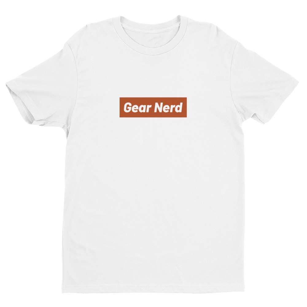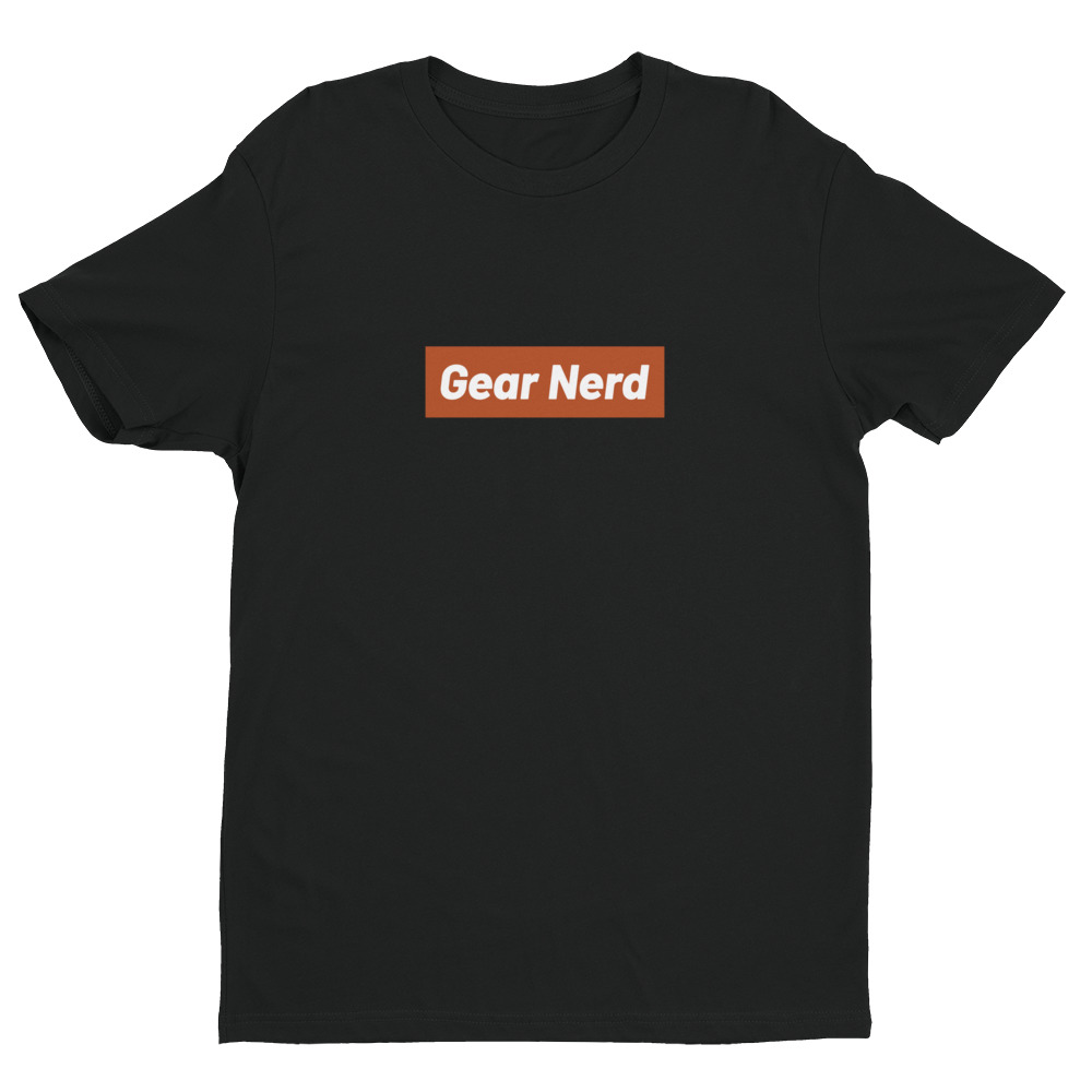 White italic letters in a red box. Apparently, that’s trendy. You’re a trendy gear nerd. This shirt is for you.